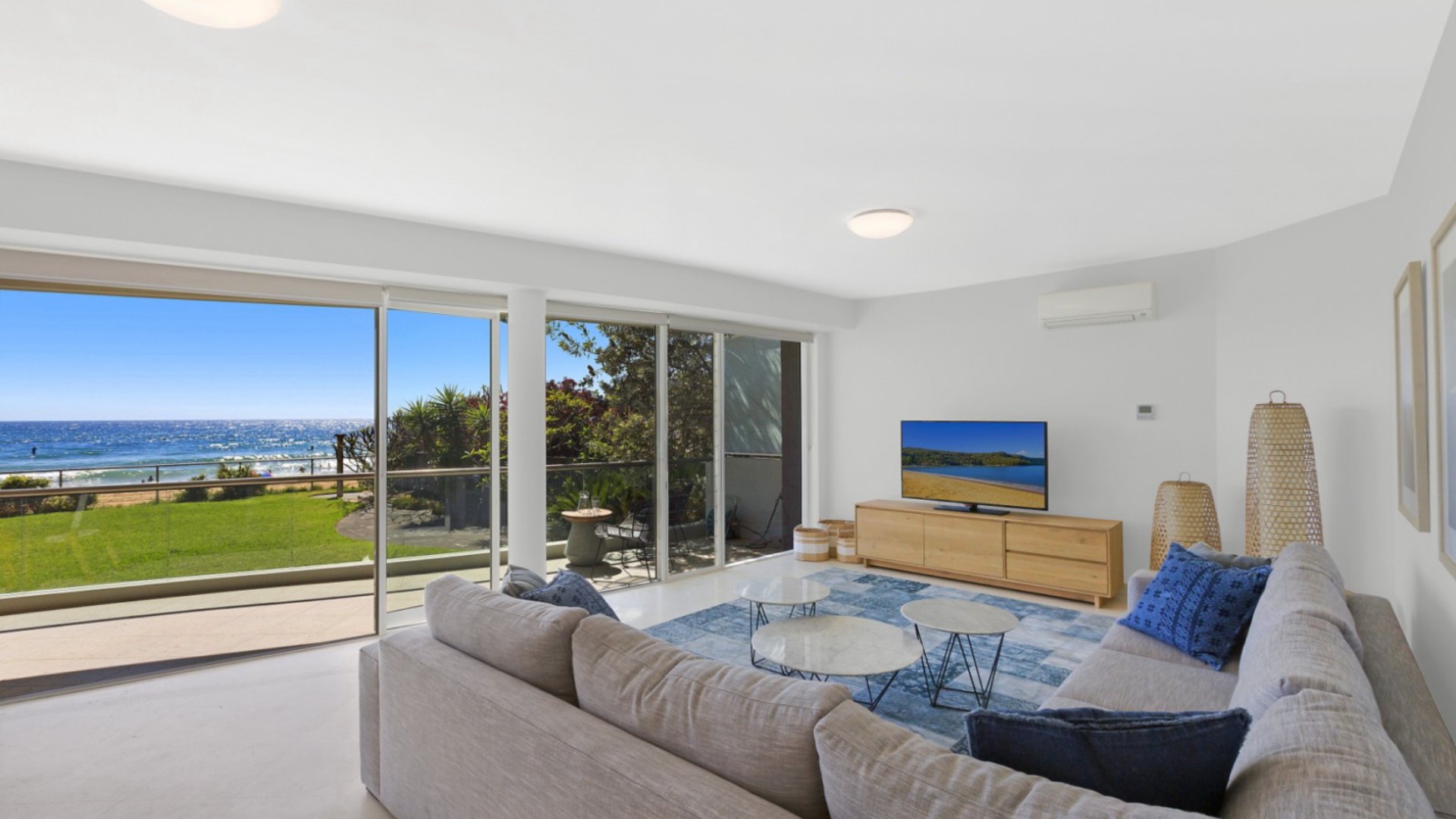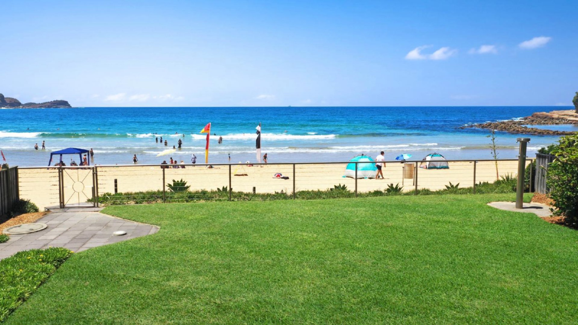 - Shared lawn at the front of complex with direct beach access