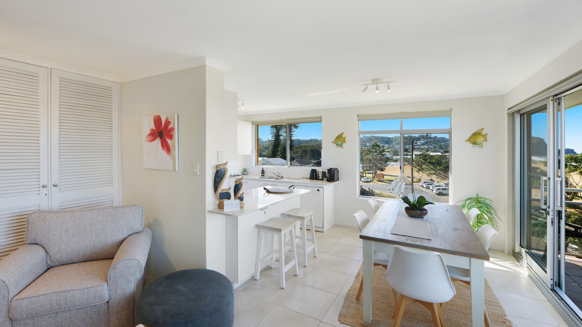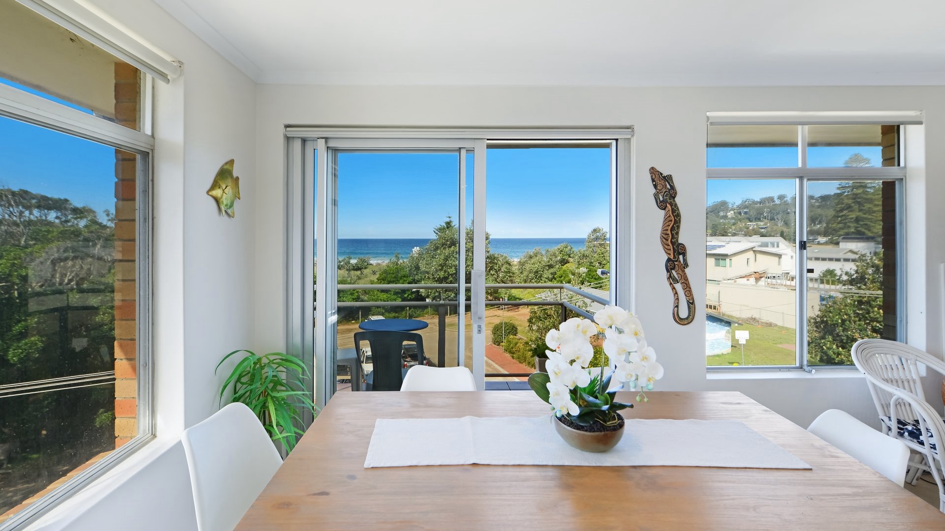 This lovely unit boasts both ocean and lake views and provides an ideal vantage point to enjoy the glorious sunrise over the ocean. Perfect location with beach and lake access across the road and multiple cafes and restaurants nearby. If you fancy a stroll, there is an easy flat pathway that takes you down to the cinema, Surf Club and more cafes and restaurants. So lock the car away - and relax!