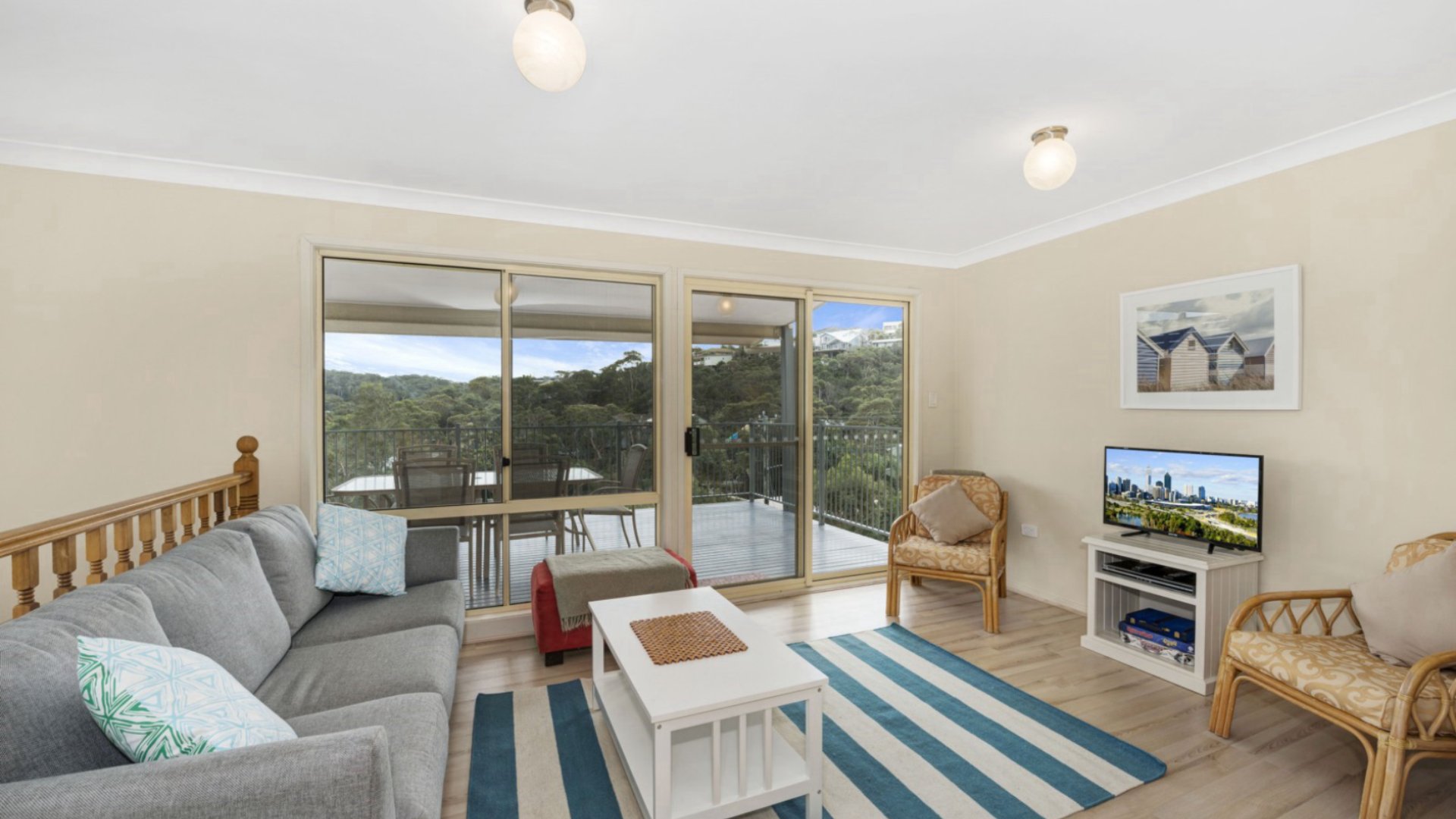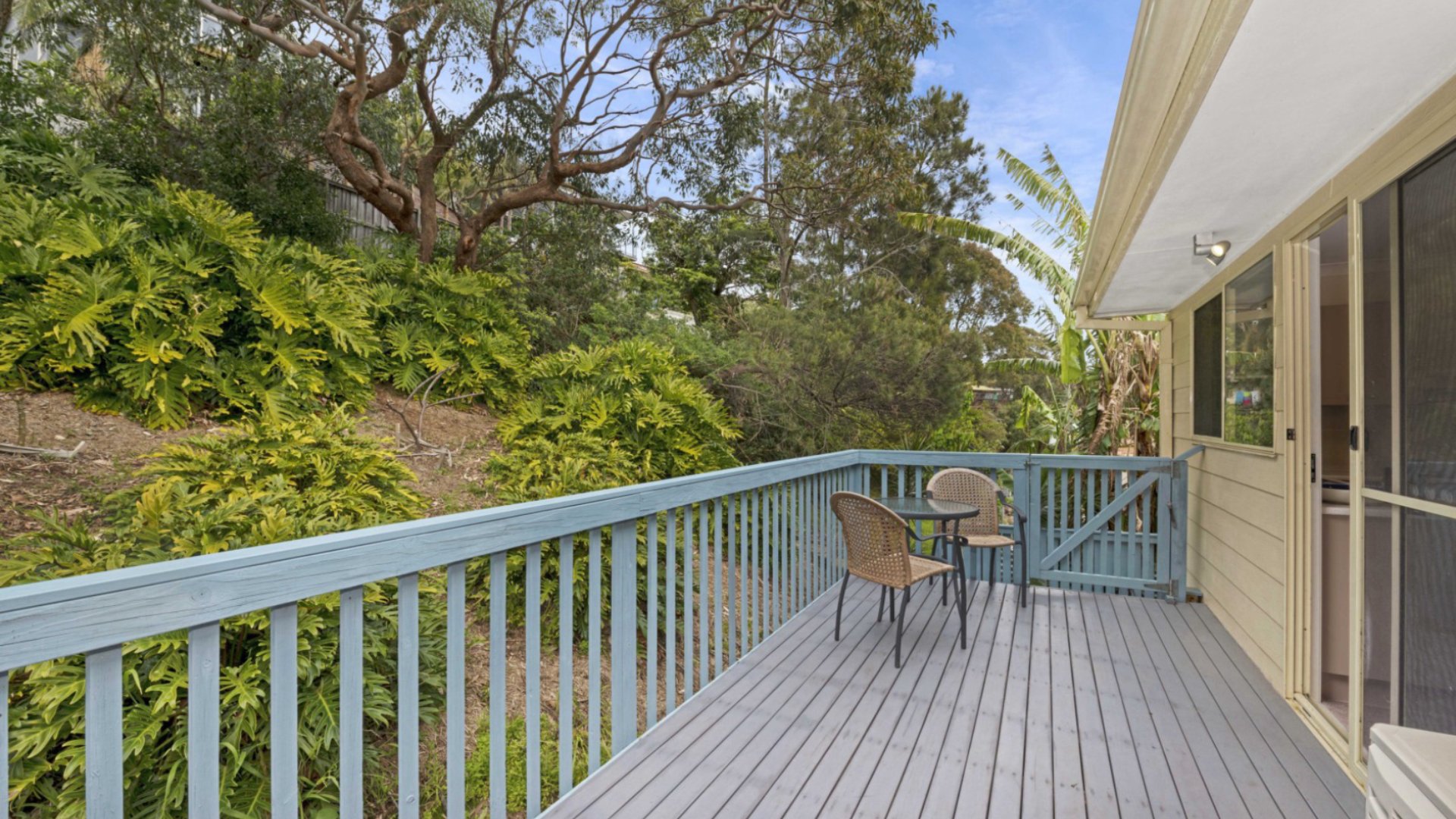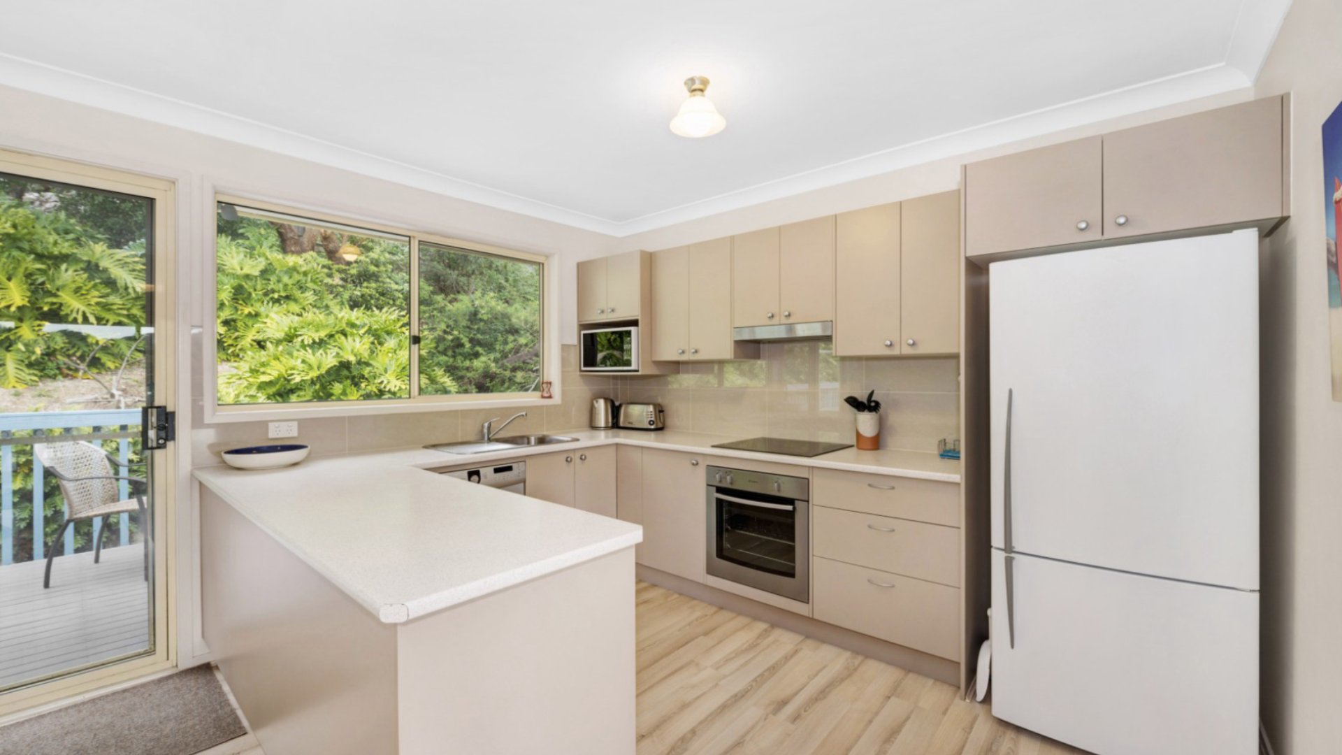 This outstanding residence contains a modern fully equipped kitchen with microwave and dishwasher. The lounge area opens to a large balcony. The dining area leads to another balcony. This property has a steep driveway.