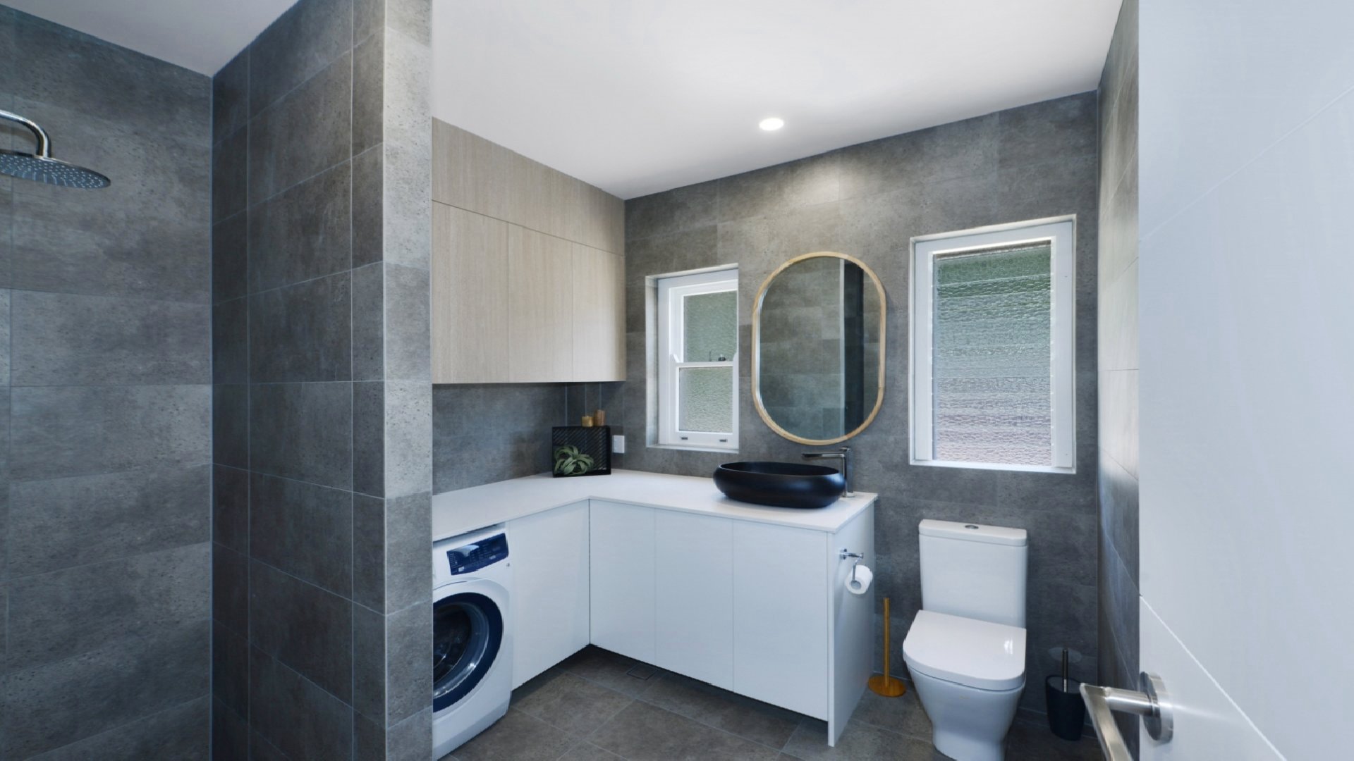 - Modern bathroom with washing machine
