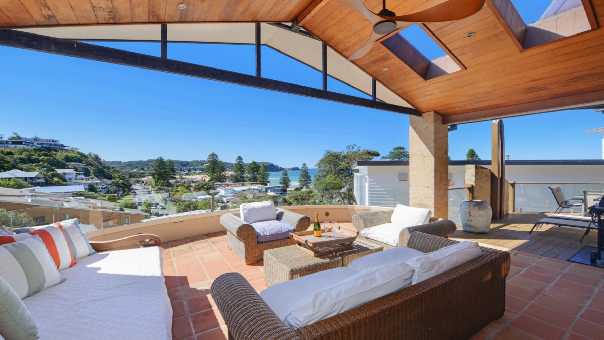 Magnificent beach and ocean views from the superb outdoor entertaining deck. Well equipped kitchen with caesar stone benchtops and high end appliances. Walking distance to Avoca Village and beach, come and enjoy!