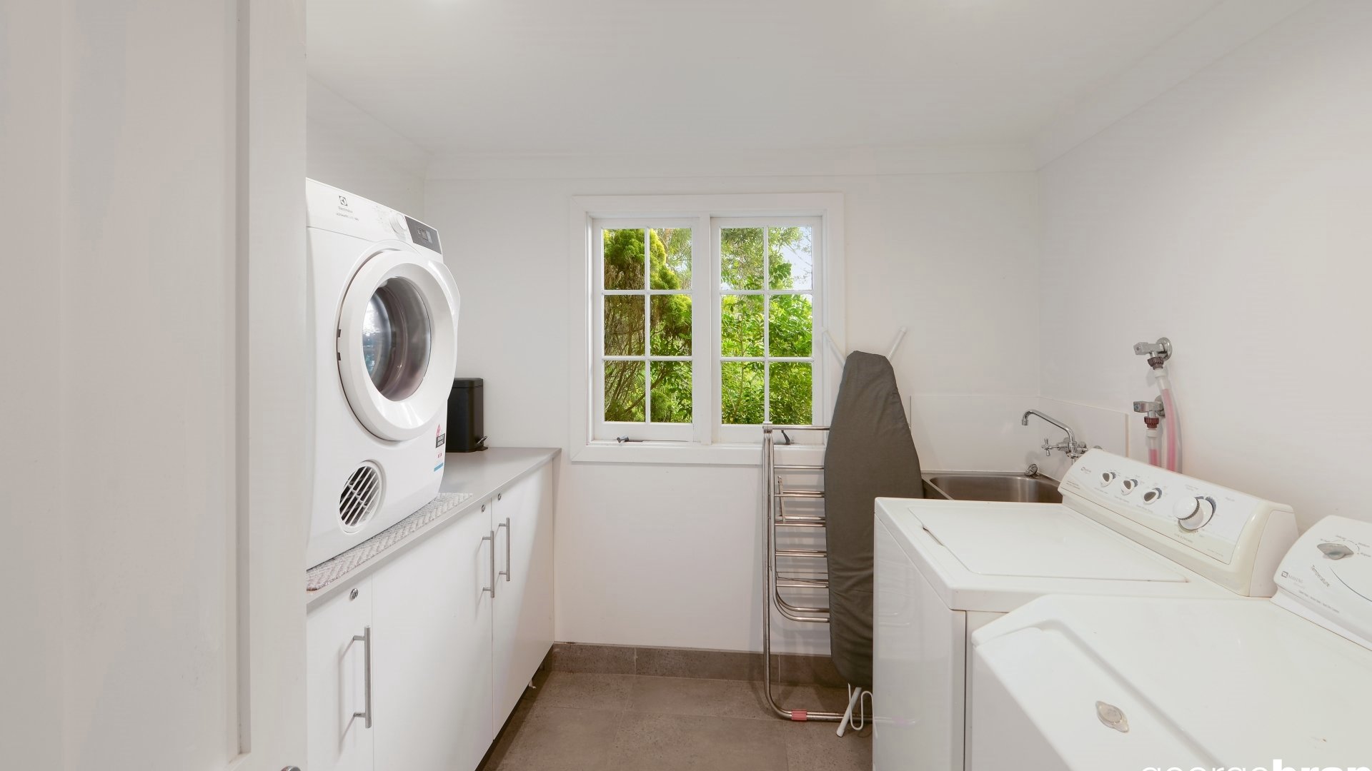 - Separate laundry with washing machine, dryer and iron